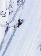 A cable dangled down from the chopper, offering salvation. No sooner had Jeff clipped into the end of the wire, when the aircraft whisked him away, just minutes before another big storm would engulf the mountain and its' great North Face. As he flew through the air at the end of the cable, Jeff envisioned the next summer's sun melting the ice around the screw that held his pack, and the free fall that would follow; the pack bursting on the first impact two-thousand feet lower, cascading the contents down the face of the mountain.