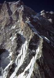In 1989, Jeff Lowe invited Catherine Destivelle to join him on trip to Pakistan to free climb the Nameless Tower of Trango. The climb would to be filmed for broadcast on ABC. Catherine was the winner of the 1988 Sport Climbing Championships. I was on that trip that Catherine decided to return to an alpine life and leave the world of competition. Jeff and Catherine shared a lifelong love of climbing. Their relationship deepened while in Pakistan, which led to an affair and a painful divorce for Jeff. In the photo on the left, Jeff and Catherine scope out Jeff's proposed new route that would go right up the middle of the north face of the Eiger. The estrangement from Lowe's daughter Sonja was excruciating for him. In the months that followed, financial troubles ensued and Jeff found himself in a "mountain of trouble", a phrase coined by David Robert's, who wrote a story about Jeff's 1991 solo first ascent on the Eiger. It was on the Eiger that Jeff came to terms with what kind of father he would need to be to demonstrate to Sonja that she was most important in his life. His commitment to her has brought Jeff and Sonja very close. Together they now enjoy Sonja's baby daughter, Valentina.