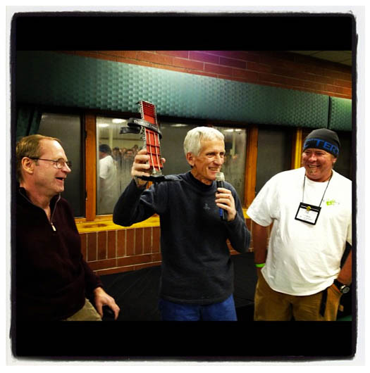 Annual Jeff Lowe Service Award - On Saturday January 12, 2013 at the Ouray Ice Festival Jeff Lowe was honored by the creation of the Annual Jeff Lowe Service Award. Jeff created the Ouray Ice Festival in 1996 - still going strong today. Bill Whitt was the first recipient for his many years of contributions and support of the Ouray Ice Park. Jeff received a standing ovation and raised a glass in honor of his many friends and good times in Ouray.