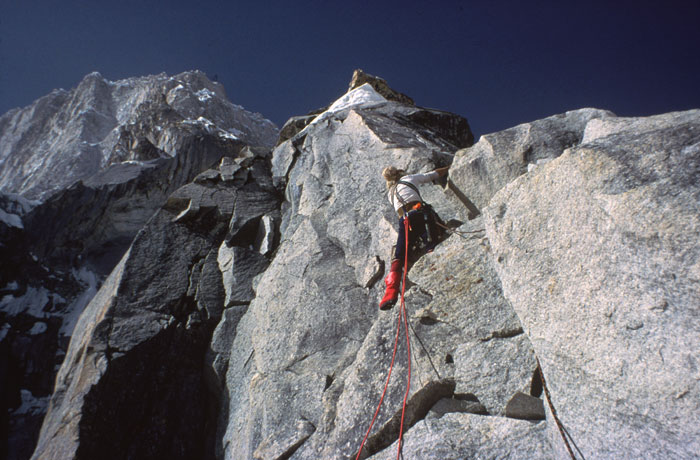 Jeff's cutting edge equipment and clothing designs are among his many contributions to the sport that are legendary. Over the years Jeff designed and promoted clothing and equipment for many companies including Lowe Alpine, Latok, Marmot, REI, Vaude, Bluewater Ropes, La Fuma, Nike ACG, Solomon, Asolo, La Sportiva, Omega Pacific, Trango and more.