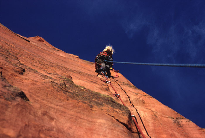 Jeff discovered climbing in Zion National Park in the fall of 1969 while driving from Yosemite to Ogden. He had heard about the big walls of sandstone and stopped to take a look. It marked the beginning of a 3-4 year period of big wall climbing in Zion. During that period he also spent time on unclimbed faces of mixed rock and ice in the Canadian Rockies.