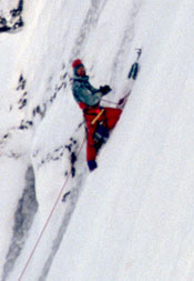 Jeff untied and left the rope and his pack behind, as he climbed unroped the last 50 feet to the summit ridge. There he clipped into a long cable dangling from a helicopter, scarcely an hour before a big storm would engulf the great North Face.